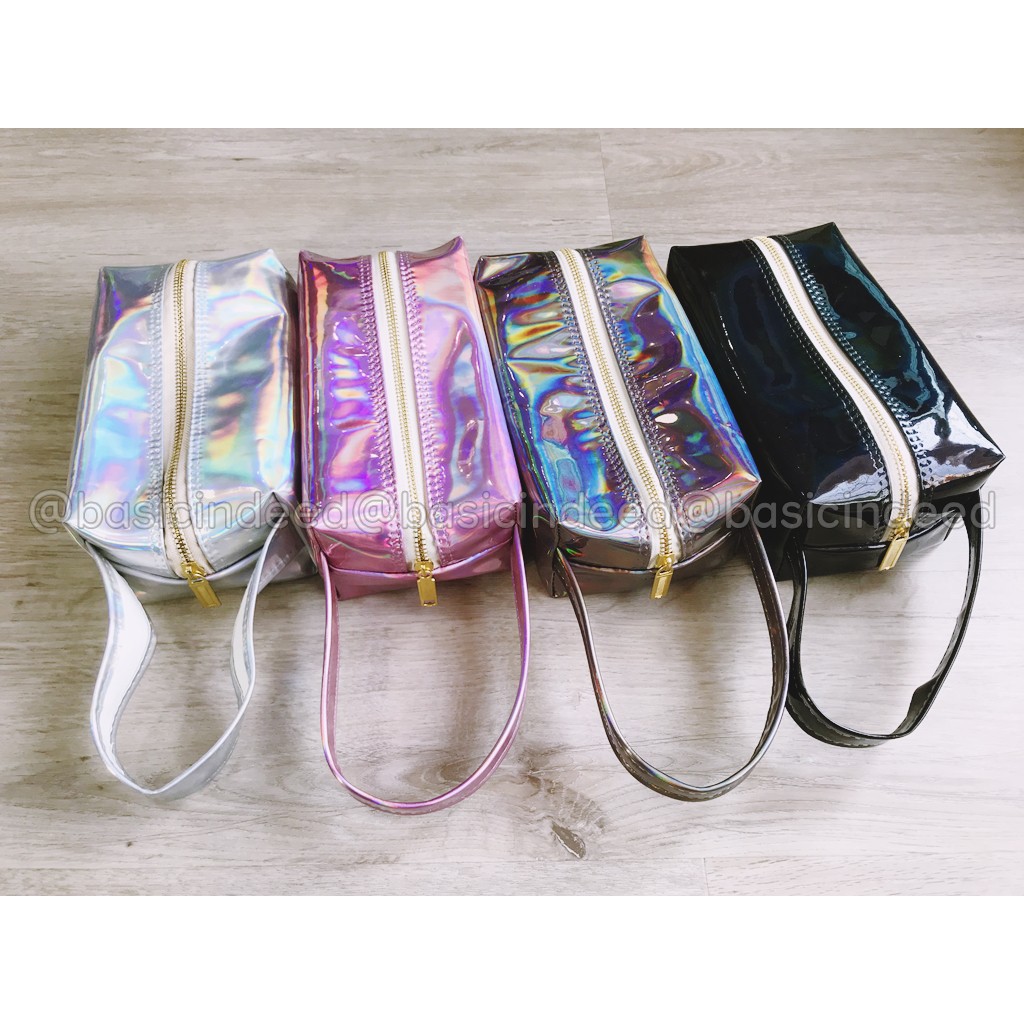 กระเป๋าดินสอทรงกล่อง กล่องดินสอ โฮโลแกรมซิปทอง XL กระเป๋าอเนกประสงค์ กระเป๋าเครื่องสำอาง